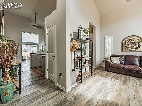 Come take a look at this lovely 5-bedroom 4-bathroom 2 story with a basement, in the beautiful Carriage Meadows North neighborhood, using our 3D Virtual Tour. With tons of amenities nearby and close I-25 and Ft. Carson military base access, this property is in a great location! Head inside to a nice formal dining room being used as a family room with attractive luxury vinyl floors, great space, and ample natural light. The kitchen is gorgeous, with the same luxury vinyl floors found throughout the main level, with beautiful stainless-steel appliances, contemporary hardware, modern subway tile backsplash, a gas range, quartz counters, breakfast nook, and a quartz island. The main level master bedroom is spacious, with a master bathroom that offers double sinks, quartz counters, a tub, standing shower, and contemporary hardware. Upstairs there is an awesome loft that can be used as an office or entertainment area, 2 additional bedrooms, and a bathroom that has double sinks and a standing shower. Head down to a spacious basement areas with great storage, 2 bedrooms, and a bathroom. Outback there is a small Trek’s deck, and the yard is fully fenced. A major highlight of the home is that it has central air! This home is in a great location near tons of amenities and close to Ft. Carson military base and offers an updated interior with great space. Don’t miss your chance to come take a look!
