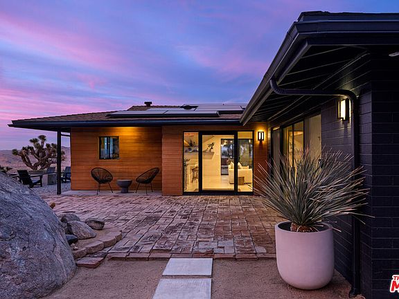 Crafted with the intention of providing a serene and rejuvenating escape, Villa Kuro stands as a testament to the seamless blend of organic minimalism and modern luxury. Situated amidst the captivating landscape of Joshua Tree, California, this extraordinary hideaway immerses guests in a harmonious convergence of natural simplicity and contemporary opulence. Nestled within a 3.6-acre expanse, the villa's design thoughtfully embraces the unspoiled beauty of its surroundings. Positioned in front of a majestic ancient boulder mountain, the property extends its boundaries to encompass the very pinnacle of this geological wonder. Connected to thousands of acres of untouched national park land, Villa Kuro invites you to explore the untamed wilderness and rugged terrain right out your doorstep. Currently available to be sold with furniture and business to be used as a vacation rental on Airbnb that can be seen on villakuro.com. Not only does the home provide an unparalleled escape but also embraces sustainability wholeheartedly. It is equipped with Tesla solar panels and multiple battery systems for self-sustaining energy. As the sun sets and the stars illuminate the desert sky, Villa Kuro transforms into a haven for stargazers. A mesmerizing fire pit and a soothing saltwater hot tub beckon guests to unwind and revel in an unmatched celestial spectacle. Gazing up at the twinkling cosmos while surrounded by the serene desert landscape creates a truly unforgettable experience, forging an unbreakable connection between the observer and the cosmos itself. Villa Kuro, with its thoughtfully designed architecture and seamless integration into the natural environment, offers an unparalleled retreat where tranquility, relaxation, and awe-inspiring nature converge in perfect harmony.