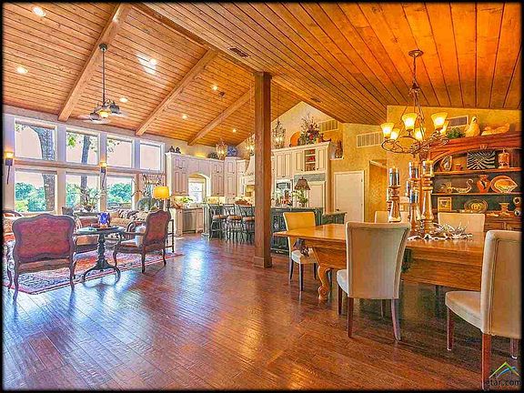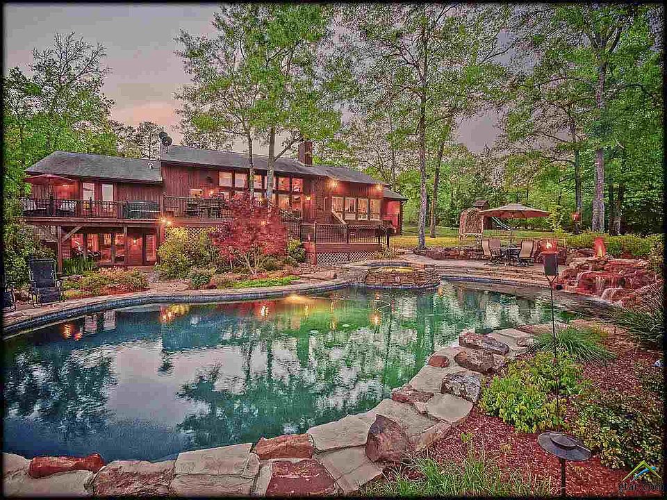 Picturesque 20-Acre Gated Estate with Pool, Lake & 3200 sqft Shop. Naturally inspiring views of the pool, private lake with fountain and park-like setting for private walks, 4-wheeling & fishing. Handsome Rustic Ranch style home with 3 car carport. Stately front door sets the tone for impressive & open Great Room. Extensively remodeled by Brad Root in 2012, the effective age of home is 5 years old. Vaulted ceilings, stone fireplace, handsome 5" oak wide plank floors, custom faux finishes & custom lighting. Amazing kitchen with hand glazed & distressed custom cabinetry, unique island & breakfast bar, spice racks beside gas cooktop & pot-filler, double ovens, Sub Zero fridge/freezer. Lovely Master Suite has private balcony, adjoining study, vaulted ceiling. Master bath has granite, Air Dry bathtub, large Roman shower. 3 guest rooms, 2 baths opposite side of home. Lower level media room, kitchen & bath. Man Cave living area, bedroom & bath are heated/cooled. 2 shop areas. Whitehouse ISD.