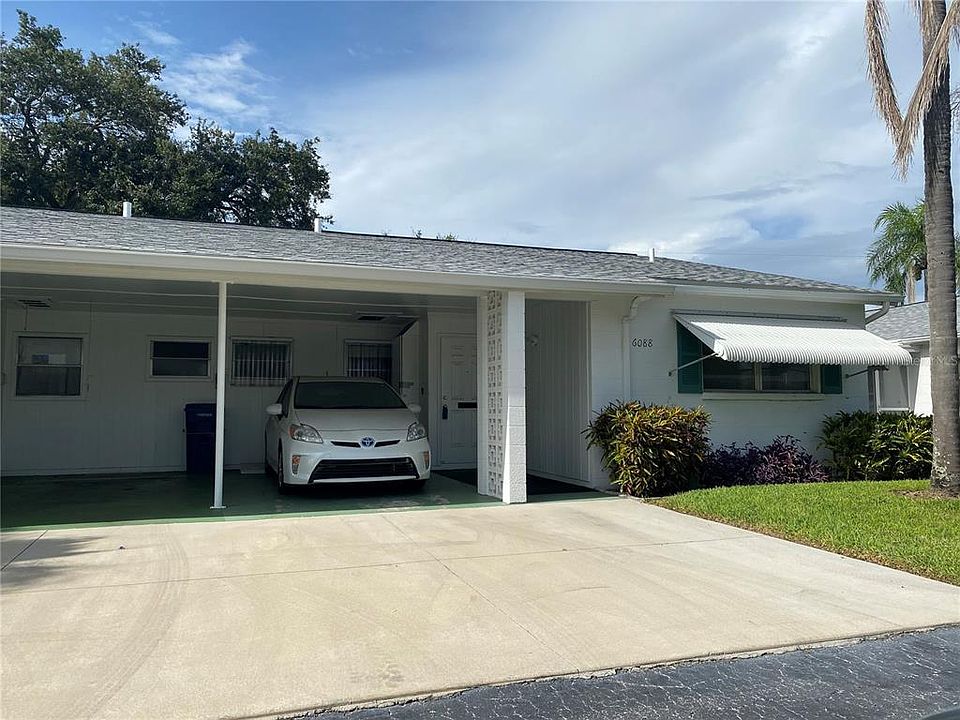 Just listed in the friendly and active community of Parkway Villas...offering a maintenance-free exterior... a 1,500 square foot heated pool with saunas and shower facilities; a clubhouse with kitchen and ample space for dinners and activities; a lending library; billiards room; and shuffleboard areas. The community is centrally located which means just a short walking distance to the local library, post office, grocery store, pharmacy, and several restaurants and department stores. Parkway Villas offers an active Social Club with close to 100 members. Favorite activities include: Bingo, card games, crafts, an exercise group, and Book Club with a lending library. Members also enjoy many opportunities to gather together for special events, activities, and dinners. So close to our world famous sugar sand beaches, several airports, top notch medical facilities and more. This unit is ready for a renovation and provides a good opportunity to choose your own style, colors and decor. Smart floor plan with 2 spacious bedrooms, 2 full bathrooms and an enclosed lanai which always makes for a cozy den, craft room or TV room. The carport at your front door, extra storage along with the end unit location make this one an exciting opportunity. Buyer to verify all measurements and information.