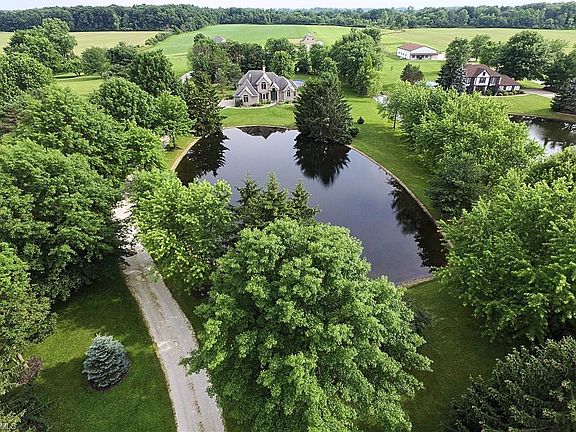 One of a kind modern home situated on 2.49 acres that has been impeccably maintained. Outside of the home you'll find the driveway spiral around the beautiful lake leading to a 3 car garage. Behind the home you'll enjoy your large garden and pool on the freshly stained and sealed deck. Going into the home you'll be greeted by a large two story foyer that leads into a living space that has 13 ft ceilings. The two way fireplace attaches to the large kitchen which is perfect for entertaining with amazing views to the back yard. The first floor also has laundry and a large office or dining room. To finish off the first floor you'll find the large master bedroom which features a bathroom with vaulted ceilings, dual sinks, soaking tub, and a large walk in closet. The second floor houses 3 more large bedrooms. The first bedroom has vaulted ceilings and a view that looks over the lake. The other two large bedrooms both have sky lights and plenty of light. A unique feature to this home is a hidden attic in the hall closet. You can use it for easy storage, play room, or even panic room. The unfinished basement has high 13 course ceilings and houses the geothermal system to keep your bills down. Did I mention a brand new roof was just put on! Set up a private showing today!