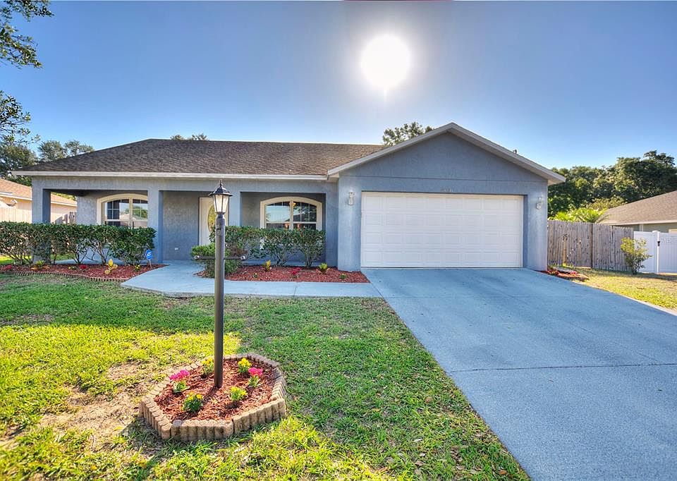Welcome to this charming home tucked away in a friendly low-HOA neighborhood located just minutes from all the best South Lakeland shopping, restaurants, and more. This lovely property is perfect for those looking for generously sized rooms and a large FULLY FENCED back yard. As you enter the home, you'll be greeted by a comfortable flex area that's perfect for a formal dining, playroom, office, or so much more! The kitchen is open to the living area and features beautiful cabinets, wood floors, solid surface countertops, and an island with a 4+ chair bar area! Relax in the spacious master suite that's designed for ultimate comfort, with a large bathroom featuring a soaking tub and separate shower as well as a walk-in closet. The additional bedrooms are located opposite the master bedroom in this split floorplan, they are equally inviting and offer plenty of space for rest and relaxation. Near the two guest bedrooms is a guest bathroom and the indoor laundry that’s also a mud room from the garage. Now to enjoy the Florida sunshine, there are two exits to your backyard from the living area, a set of French doors leads to a huge open patio, while a single door leads to your covered and screened porch. The back yard also features a shed that was just added in 2022! Don't miss out on the opportunity to make this your dream home, schedule your showing today. AC Replaced in 2022!