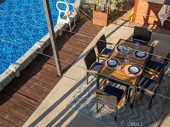 Absolutely gorgeous remodeled and expanded three bedroom , two bath single level home with private above ground pool and separate spa. All new kitchen with custom tile work, stainless steel appliances, gas cooktop in island overlooking great room. Adjoining breakfast nook with pool views. Great room with stacked stone accent wall and electric fireplace. Plush spa inspired bathrooms with no detail spared. Gracious master suite with private outdoor sitting area. Both secondary bedrooms offer sliding doors leading out to private patio. Rooftop viewing deck to enjoy the spectacular desert sunsets transition into an amazing star filled night sky. Multiple outdoor seating areas with custom lighting. Picturesque grounds with firepit and hammocks. Multiple custom murals. Two outdoor bathtubs and one outdoor shower. This property is a fully fenced compound offering the ultimate in privacy and solitude. The home is complete with new furnishings including washer and dryer. A truly unique turnkey offering to start enjoying all the wonders of the Joshua Tree area and national park.