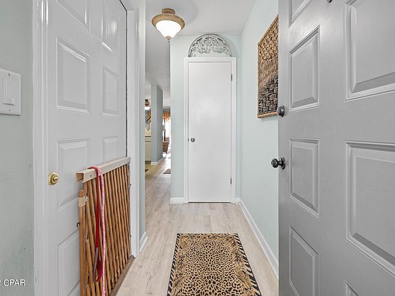 BAY FRONT LIVING WITH A WHITE SANDY BEACH! Very close to Tyndall Air Force Base convenient for any Military Personnel. A 3 Bedroom 2 1/2 bath townhome with a Garage! This one has upgrades like Vinyl Plank flooring downstairs, fresh paint done tastefully, breakfast bar and user-friendly kitchen. Separate Laundry room and storage inside. Half bath downstairs for convenience. Florida room with windows and screens to enjoy the Florida Breezes off the living room. Sip your coffee every morning or take a walk on the Bay shoreline. Upstairs find 3 bedrooms and two full baths. Off the spacious Master Bedroom find another Balcony Enclosed Florida room with windows and screens for added enjoyment. Low HOA covers Pool maintenance and lawn service. This one is move in ready! Mexico Beach just a short drive with Gulf Beach access, Quaint shops and restaurants for your enjoyment! Come See Today!