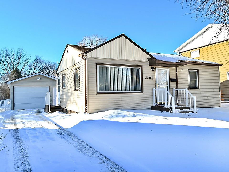 This updated two-bedroom, one-bathroom home offers modern conveniences and stylish finishes throughout. The kitchen has been beautifully renovated with white cabinetry, quartz countertops, and stainless steel appliances. The open-concept living and dining area features multiple large windows, allowing natural light to flood the space. Newer flooring and crisp white trim create a bright and inviting atmosphere.   The bathroom showcases a chic design with faux seagrass wallpaper, classic white subway tile, and easy-to-maintain tile flooring. Both main-floor bedrooms are generously sized, offering comfort and versatility.   Downstairs, a full basement awaits your personal touch. The homeowner has already insulated and started framing, providing a head start on transforming the space. There's potential for a spacious family room, game room, additional bedroom, and even a bathroom.   Outside, the property features a detached two-car garage and a fenced yard, perfect for outdoor enjoyment. Located in Northwest Minot, the home offers easy access to all areas of town and is surrounded by mature trees and landscaping, adding to its charm. Don't miss this move-in-ready home with endless potential!