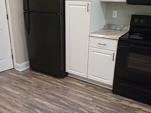 Beautiful single-level, 3 bedroom, 2 full bath duplex apartment in the heart of Hickory's Claremont historic district, located near Lenoir Rhyne University and downtown Hickory. Includes ceiling fans throughout, luxury vinyl plank flooring, sleek black kitchen appliances, including refrigerator, stove/range, built-in microwave, and dishwasher. Laundry hookups are in the closet off of the kitchen. Parking is in the front of the building and each unit has a raised wood deck in the rear of the building. The tenant is responsible for all utilities. Sorry, no pets allowed. 1 year