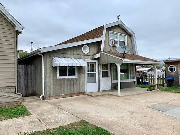 Large Garage: 29' x 60' has water, sewer, 200 amp electrical service, insulated, commercial zoned. Bath with sink and commode. Lots of storage and 10' doors. Small House: 2 Bedrooms. Oak kitchen, nice size living room and dining area. Bath has shower only. No appliances are included. Thermo windows. Oak vanity for storage. The other part of the house is a workshop with an enclosed front porch. Large House: 3 Bedrooms, family room. Wood stove does not stay. Oak kitchen: No appliances stay. Dining area: includes a pantry. Living Room: Wood burning fireplace that can heat the whole house, berber tan and brown carpet. Bedroom: French doors, berber carpet, wall paper. Bath: Jet tub, oak vanity, tile flooring. Laundry area: Washer and dryer hook ups plus storage. Master Bath: White paneled walls, shower, oak vanity, storage, plus extra walk in closet. Full basement with family room, could be another bedroom, plus storage. 2 rooms upstairs that could be redone. Currently these are used for storage. Great family home!