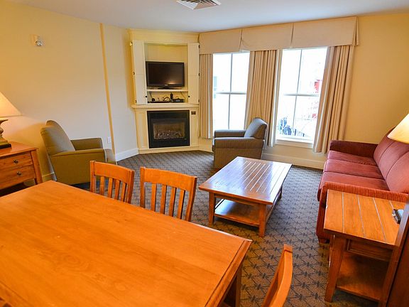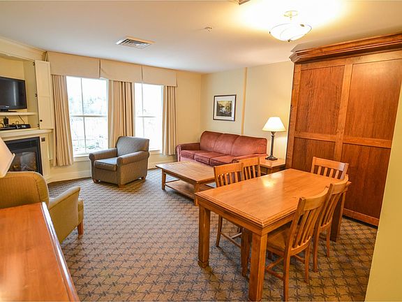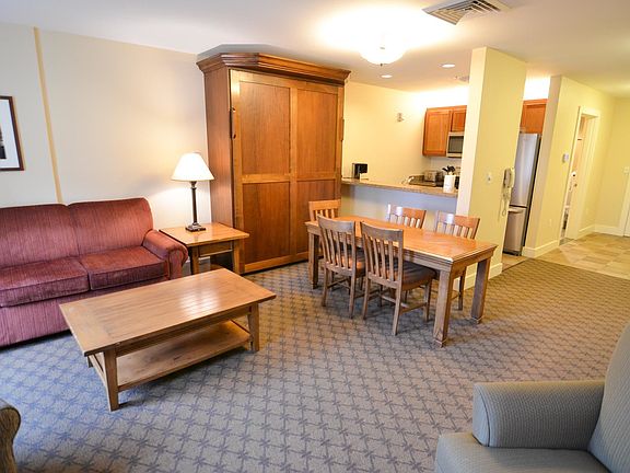 Jackson Gore Adams House 609/611 Quarter I at Jackson Gore on Okemo. This spacious 1 bedroom / 2 bath with lock out capability that can be used as a complete 1-bedroom condo or split it into 2 units - a studio and a hotel room. Use both sides, rent both sides, or use one side and rent the other. The full unit sleeps up to 8 with 2 queen beds, a queen wall bed, and a queen pull out sofa. The kitchen offers stainless appliances and granite counter tops. There is even a laundry closet for added convenience. The location is great offering views of the Adams House courtyard with hot tubs as well as the slopes. Enjoy all the amenities that the inn has to offer like indoor/outdoor pools, hot tubs, tennis, fitness center, sauna, playground...etc. These are some of the most convenient slopeside access condos at Okemo. ROFR