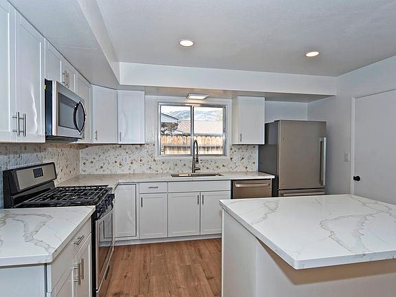 Remodeled single-story home on the west side of Carson. Home features updated kitchen with new appliances, new gas fireplace, central AC, fenced backyard with grass, and two car garage with additional cabinet storage. Centrally located a block from Fritsch Elementary School and just one mile from downtown Carson City amenities. Currently tenant occupied, will start showing end of May/beginning of June. Renter is responsible for gas, electricity, and water. Owner pays for trash.