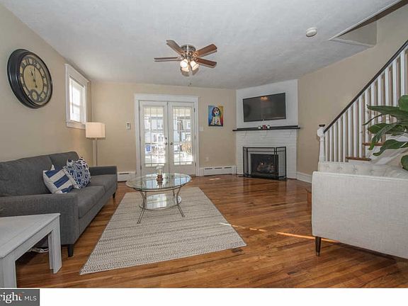 Completely renovated with gorgeous updates throughout, this 3 bed/1 full 2 half bath twin is ready for you to move right in! Step right into this open and attractive floor plan to discover hardwood floors with beautiful inlay, freshly painted walls, ceiling fans, and charming finishing details throughout. Relax in the living room and cozy up next to the gas brick fireplace. An arched doorway leads you into the formal dining room, complete with a decorative, white chair rail. Enter through to the gourmet kitchen, featuring granite countertops, stainless steel appliances, beveled subway tile backsplash, a custom-built island, and soft close cabinetry. You'll love the farmhouse style details, such as the exposed beams, stained glass windows, lantern pendant light fixture, and a sliding barn door that leads into the finished basement. Each of the 3 bedrooms feature hardwood floors original to the home, and the master bedroom has its own dedicated powder room and a walkout patio. Completing the second level is a newly updated full bathroom with a tub/shower combo that has marble tile with decorative accent. The finished basement adds another living area along with an additional powder room, ample storage space, and the laundry facilities. Let's not forget the private fenced-in backyard with a custom fire pit, perfect for entertaining guests. With so many features and upgrades throughout, this house feels like new! Don't miss the chance to make it yours!