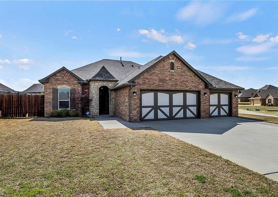 This stunning home In Choctaw Schools offers a perfect blend of modern design and comfortable living. It's spacious 3bed 2.5bath with study boasts an open concept floor plan. perfect for entertaining. As you enter the home, you'll be greeted by a light-filled living room with large windows. The vaulted ceilings give a sense of grandeur while the cozy fireplace adds warmth and charm. The kitchen features sleek stainless steel appliances, a gas range, ample cabinet space and a convenient breakfast bar for casual dining and an adjoining dining area for dinners or entertaining. The main suite is a true retreat with its generous size, walk-in closet, and en-suite bathroom with a double vanity, soaking tub, and separate shower. Step outside to the backyard oasis, where you'll find a covered patio and space for outdoor entertaining. A few more features include a walk-thru utility room, an oversized 3-car garage with storm shelter for safety, and class 4 shingles that can lower insurance.
