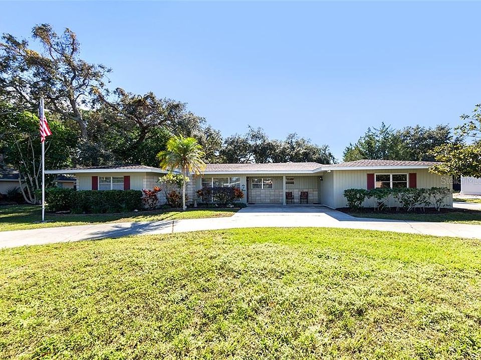 LOWEST PRICED 3+/2+/2+ POOL HOME ON THE ENTIRE ISLAND - AND IT'S ON A 16,859 SQ.FT. LOT! This one of a kind home features mid-century modern design and Ocala Block construction situated on an oversized lot with a private park like setting. Guiding principles of the "Sarasota Modern" movement were open design, abundant light, and a focus of the tropical Florida landscape - and all are present here. Although built in 1952, this home has all the characteristics buyers search for in a modern home, including an open and versatile floor plan, vaulted & wood-beamed ceilings, shiplap walls, abundant light, windows across the rear of the home with panoramic views, oversized ceramic tile, large corner fireplace, and a clean white neutral kitchen with plenty of functional space. Both bedrooms have large windows and abundant closet space. An added bonus to this home is a 3rd bedroom with separate entrance that is currently used as an office. An adjacent utility room with an extra (third) bathroom offers possibilities for creating an additional master or guest en-suite. Relax in privacy or enjoy entertaining on the covered lanai, swimming pool, and large backyard with sweeping oaks. An oversized 20'x12' detached garage with electricity can shelter an extra vehicle or provide bonus storage space. Priced at lot value, if you love the lot but the home does not suit your needs, simply start over and build your perfect dream home. The possibilities are endless!