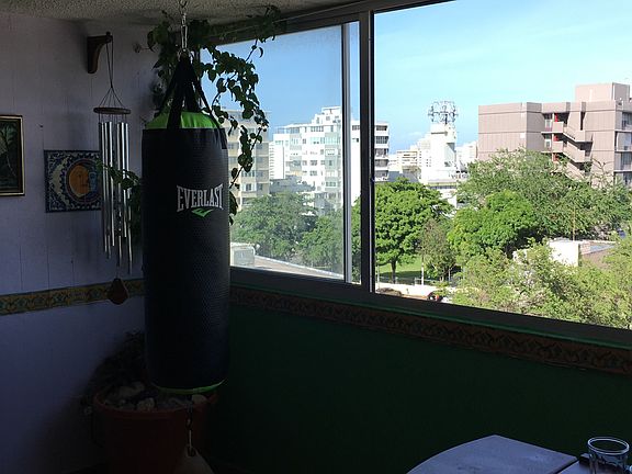 Excelente apartamento. Vistas a vuelta redonda de la ciudad, Parquecito de Miramar (y cuartel rodante de la policía municipal), laguna del condado y océano atlántico . Ventilación cruzada, SIEMPRE fresco. Consta de 3 habitaciones, dos baños, un estacionamiento reservado y varios para visitas, sala comedor, family room. Planta eléctrica para áreas comunes (elevadores, seguridad, portones, intercom, cisterna de agua, etc) y un enchufe conectado a la planta eléctrica en cada apartamento. Para verlo en persona favor llamar al 787-406-3584.