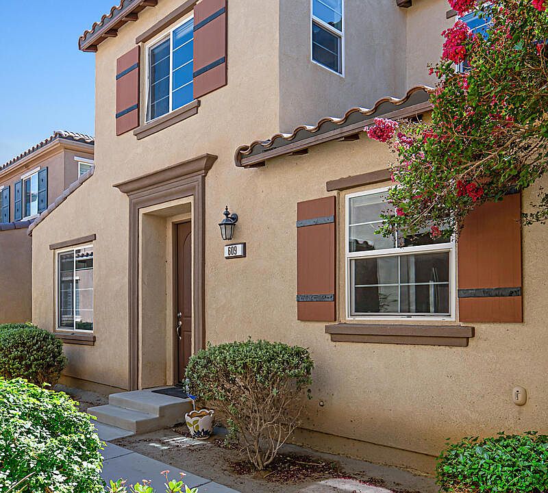 Welcome to a thoughtfully designed 3-bedroom, 2.5-bath home located in the desirable gated community of Spanish Walk. The main level showcases a sophisticated kitchen with granite countertops and rich, dark cabinets, creating a warm and modern style. All three bedrooms are upstairs, including a generous primary suite with a large walk-in closet and private bath. The two additional bedrooms enjoy a convenient shared bathroom with dual sinks and private access from each room. A spacious, separate laundry room with cabinet storage is also located upstairs for added convenience. Brand new carpet was installed in 2025, making this home move-in ready! Enjoy outdoor living on the covered patio, complete with an automated drip system for easy maintenance in the private small side yard. Two car attached garage and ample storage round out the superb benefits of this home. Spanish Walk is a beautifully maintained community offering resort-style amenities including three pools and spas, a fitness center, billiards room, lush green spaces and scenic walking paths--perfect for embracing the desert lifestyle. Ideally located with quick access to major arteries and just minutes from all the best the Coachella Valley has to offer!