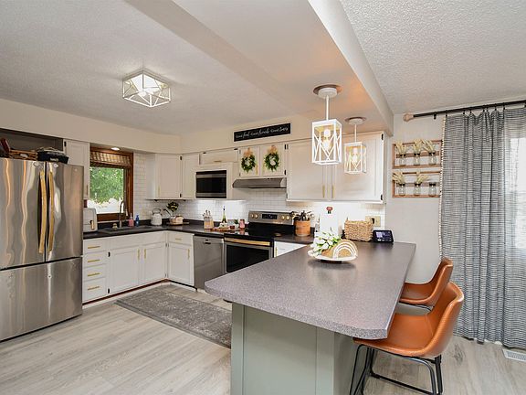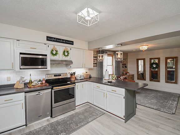 Small town living at its finest, this home features 4 bedrooms and the master is huge! 2 full bathrooms with multiple living areas on the main floor. Adorable kitchen with counter height eating area. There is an oversized double stall with heating and cooling capabilities. Additionally there is a 3rd detached garage for storing all of your toys! Wrap around composite deck is the perfect place for outdoor entertaining. Raised outdoor planters are in place for a large garden. This home is waiting for you to see today!