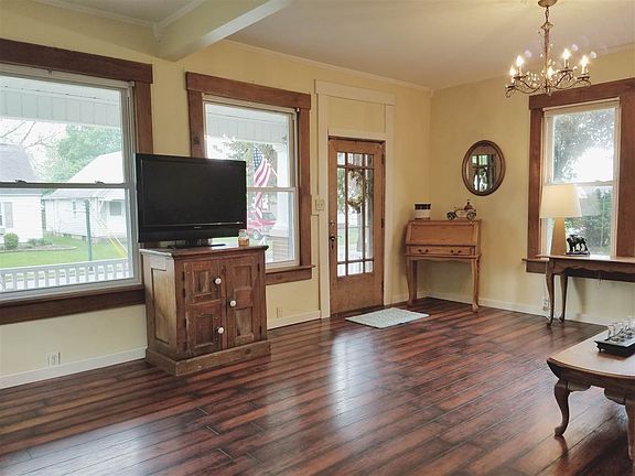 *** HUGE PRICE REDUCTION *** Stop by and See this 2-Story Home with Many Updates and Amenities. Start with the Welcoming Covered Front Porch with Porch Swing to enjoy on those warm days. Then enter into the Large Living Room with Wood Laminate Flooring and Crown Molding. Over sized Kitchen that has an abundance of Counter Space, Cabinets with Pull Out Drawers , New 16" Porcelain Tile Flooring that runs into the ½ Bath on Main Level. Freshly Painted and Barn Style Wainscoting. One Bedroom on Main Level that could be used as a Den or Playroom. Two Bedrooms upstairs with Full Bath and Large Linen Closet. The Expanded Master Bedroom has Two Closets with one Walk-in plus two Ceiling Fans. Freshly Painted, New Carpet, Newer High Efficiency Furnace and Central Air, Plus additional Blown in Insulation. Roof is only 7 years old that had a complete tear off. Partially Finished Basement with Washer and Dryer that stay. and Service Door. 2 Work Benches and Floored Attic Space. Covered Cement Back Huge (29 x 23) Detached 2 Car Cement Block Garage that is insulated and Heated plus Brand New Garage Overhead Door. Patio and Large Fenced Yard with Fire pit. Convenient Location and Close to Everything. MOTIVATED SELLERS ...Make your offer today!