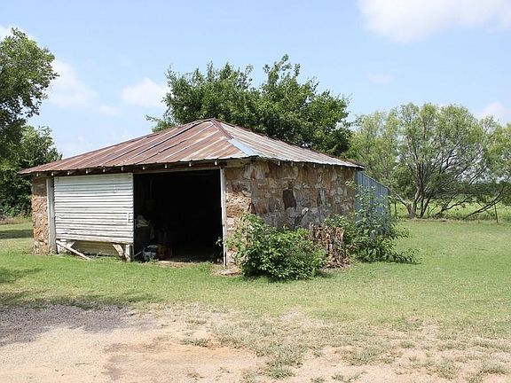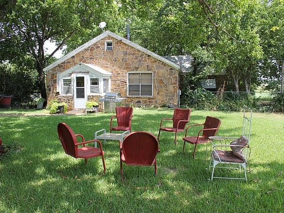 Step back in time with this quaint rock farm house. Open living and eat in kitchen in addition to a formal dining room. Home is currently being used as 2 bedroom, but only one has a closet. Nice screened porch off the side for enjoying that morning cup of coffee. Spacious room upstairs that could be used for multiple purposes. Relax out back under a huge shade tree, overlooking 33.5 acres with trees, barn, pond & riding arena that needs a little TLC. Lots of native grasses, wild plum and blackberry bushes. Acreage is fenced and cross fenced.