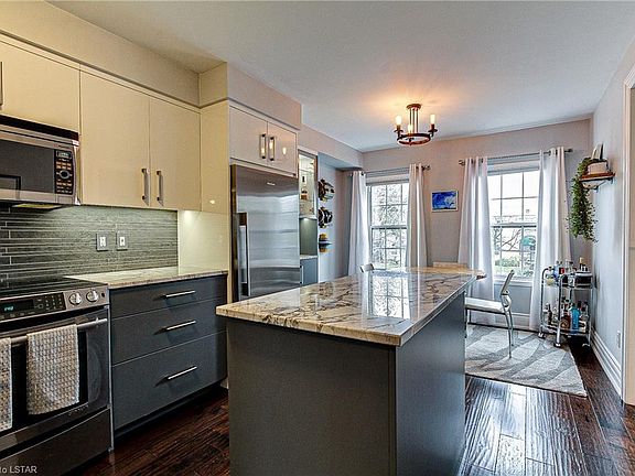 Modern 3-storey condo in historic Woodfield. This home features 3 bedrooms: all found on the third floor. It also features 2 bathrooms: one 4-piece on the third floor and one 2-piece on the second floor. This home features tons of updates including new basement carpeting, renovated bathroom, new furnace (2018) and hot water heater (2019), full width raised deck, gas hookup for bbq, and custom kitchen. The low-maintenance backyard features a butterfly garden, 3-seater hot tub and walkout from the basement. 3-car driveway and single car garage.