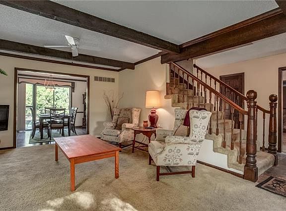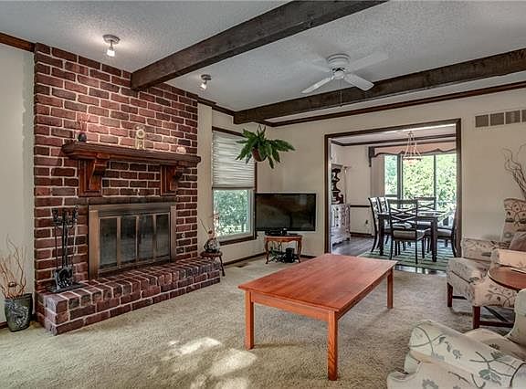 Amazing location, so much space and ready for your updates! Newer roof, thermal windows & siding. 3+ bdrm 3 full ba! Family rm, eat-in galley kitchen, formal dining and living rm. Master suite w/ great closet space, private bath, and huge attached den/nursery/office. Generous secondary bedrooms. Partially finished walk out basement with 3rd full bath! Deck overlooking treed lot. All appliances stay. Love Golf?? 1,000' from Lawrence Country Club. Minutes to I-70, KU Campus, Mass Street. Inspections welcome As-Is.