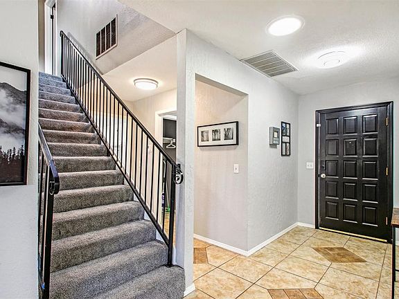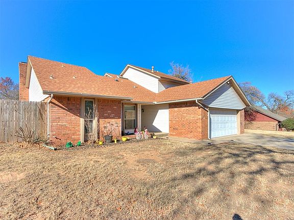 Wonderful neighborhood in the desirable Choctaw Schools district. There is a large living room with soaring ceiling, fireplace, wet bar and newer vinyl plank flooring. The dining room is situated just off the living room. The kitchen is bright and cheery with painted white cabinetry, a Jenn-aire down draft cooktop, built-in wall oven and microwave. The main floor has the master bedroom with ensuite bathroom, dining room, kitchen, laundry room and guest half bath. Upstairs there are two secondary bedrooms and a full bath. The large half-acre fenced lot has a 10' x 22' covered patio MOL, great for entertaining. Assumable loan at 3% - call for details. Call today for a private viewing.