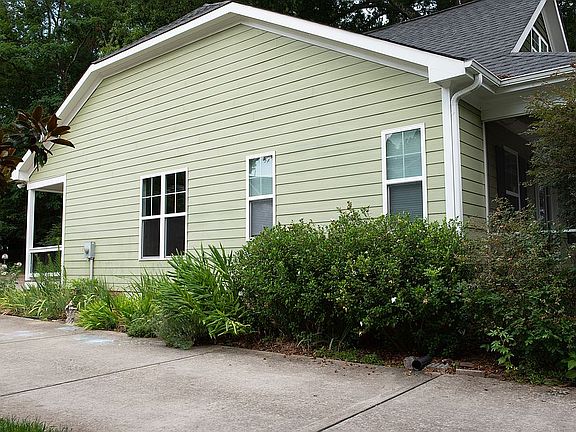 Large Kitchen, Dining, and Living areas connected in an open plan. Hardwood floors in living areas, and 2 bedrooms; Carpeted Master bedroom; tiled bathrooms. Master bedroom with large walk-in closet; Master bath with large tub and separate shower. Cathedral ceilings in Living room and Master bedroom - 9ft elsewhere. Large full-height attic. Driveway and parking. Small maintainable yard with mature Gardenias, shrubs, flowers, and Gem Magnolias. Mature hardwoods trees throughout neighborhood.