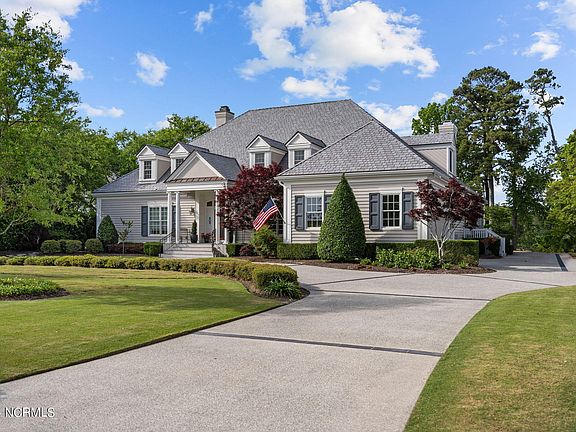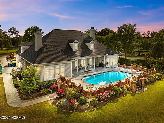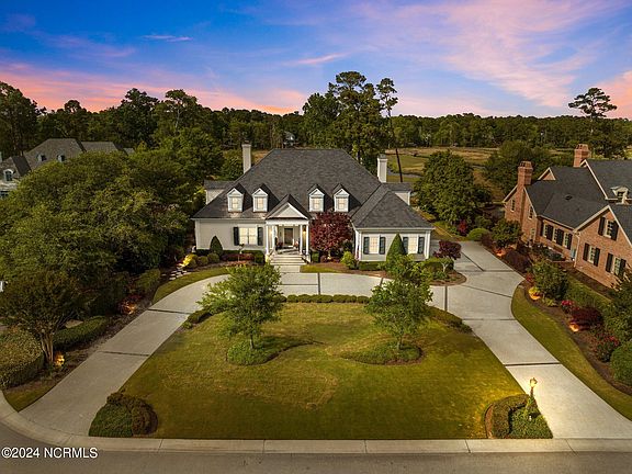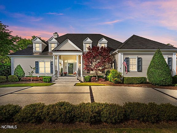 Rare waterfront opportunity in the highly sought after Landfall community! Welcome to 609 Dundee. This beautiful custom home is located on one of the most prestigious streets of Landfall. Sitting on a high bluff overlooking Howe Creek with incredible views! Relax in the large saltwater pool after coming back from a fun kayak trip to Mason Inlet or enjoy fishing and all the wildlife from your own private dock. Sitting on the front porch you will enjoy the breeze and expansive views overlooking #5 of the Nicklaus Golf Course. As you enter this wonderful home you will notice the fine attention to detail and high end finishes. The floor plan is great for living and entertaining with two living rooms, formal dining room, and a kitchen any chef would dream of. Spacious master suite with direct access to pool & patio. Office with beautiful custom woodwork with additional office upstairs, both can easily be converted to bedrooms. Two additional bedrooms upstairs with full bathrooms. 900' unfinished space that could make an amazing movie/game room or additional bedrooms upstairs. Truly a special place!