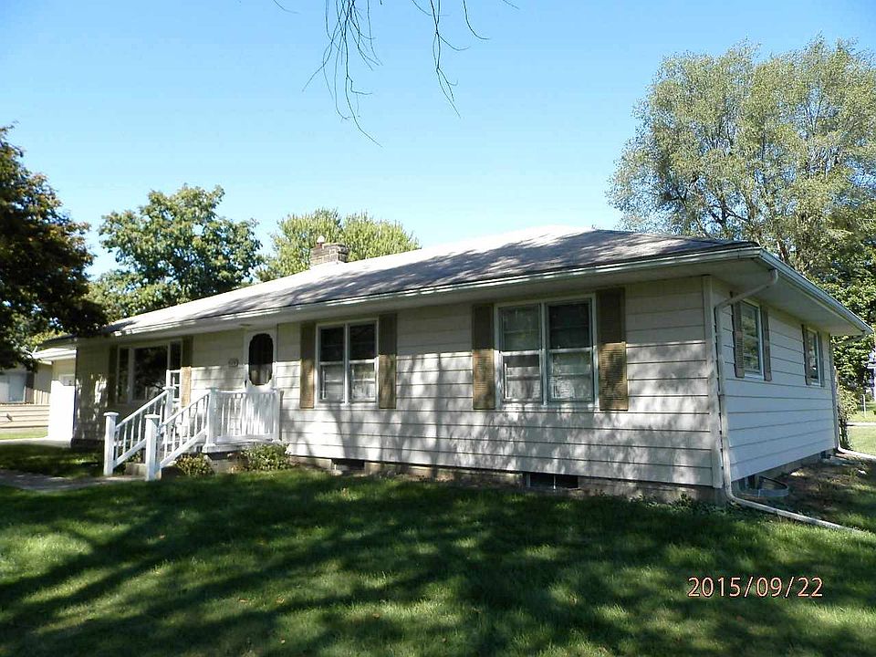 1 story home on a level double lot with mature trees. Home features 3 bedrooms, 2 baths, gas fireplace, covered patio, 1 car attached garage, full basement, large livingroom, formal diningroom, natural gas heat & central air. Included in the sale is range, refrigerator, Simplicity riding mower, Toro push mower, Toro snow blower, leaf blower, trimmer and shed. Property sold as-is.