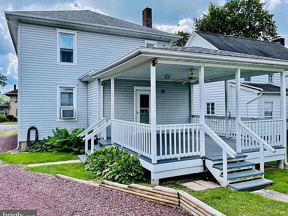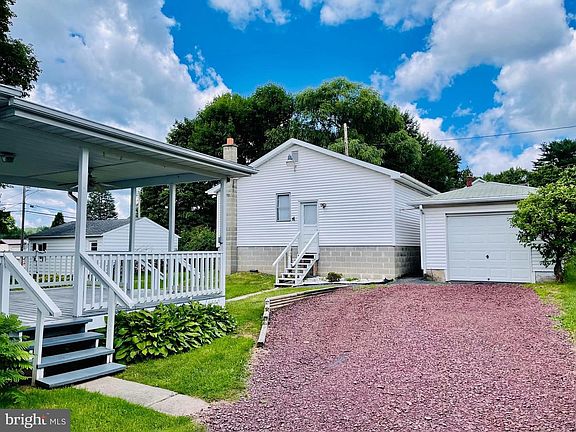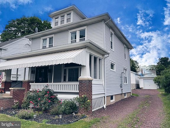 This well maintained Weatherly two story is waiting for you! With three bedrooms, 1 3/4 updated baths, large dining room, generous sized kitchen with plenty of cabinet space, 3 stool bar, and a cozy living room, there's a space for everyone. One look around and you will notice it's uniques architecture throughout as well as gorgeous hard wood floors and charming stained glass windows. Enjoy your quiet summer nights on the large front porch with brick entryway, or host parties from the covered rear deck with outdoor ceiling fan. This property also includes two garages(one two car and a one car) which are heated by pellet stove and gas. Call today for a tour of this great home!