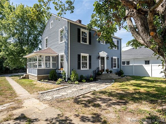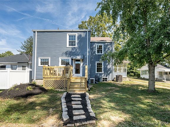 COLONIAL REVIVAL home in historic downtown Corydon... only a short walk to the town square. This beauty has undergone a splendid renovation and sellers have managed to retained so much of the original charm throughout the home. The vintage hardwood floors have been newly refinished and look splendid. Too many updates to mention... the pictures tell much of the story. But here are a few highlights: New dual zoned furnace, a/c and ductwork. New windows, landscape, deck & bathroom updates. This kitchen was completely gutted and redesigned. Lots of cabinets w/ granite countertop, plus a full compliment of appliances, which stay. Upstairs you'll find a spacious primary suite has a brand new full bath and a walk-in closet. Also upstairs: the remaining 2 bedrooms, another full bath, stairway to attic storage and lots of closets. All bedrooms have WALK-IN closets. A full unfinished basement exits to the backyard. The attic has spray foam insulation and the wiring has also been updated. Talk about a rare opportunity, this charmer is one to see! *(There is a 1-c garage that comes with this house. The structure and the driveway is shared with the house behind.)