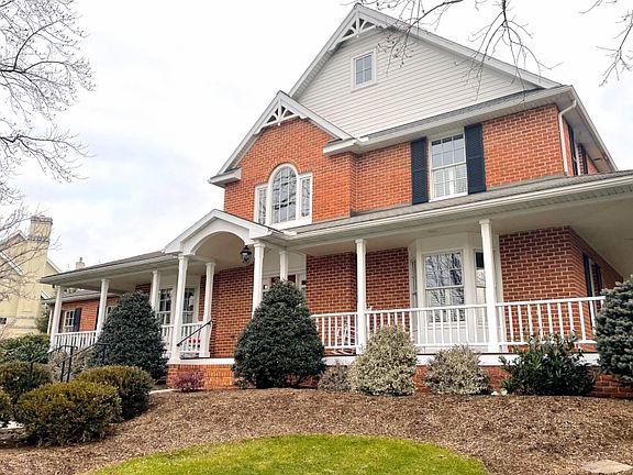 Red brick 2 story traditional house with a wrap around porch that leads into a screened porch and gazebo.