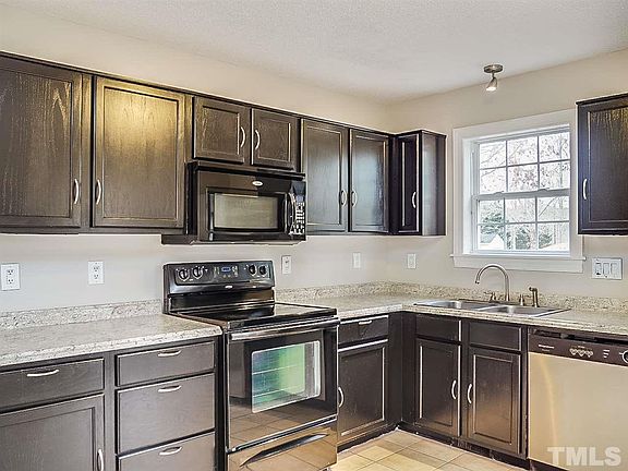This Wake Forest two-story offers a fireplace, and two master bedrooms. Upgraded features include fresh interior paint, a new roof, and new kitchen countertops.