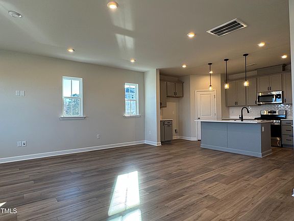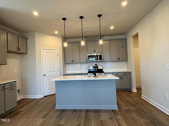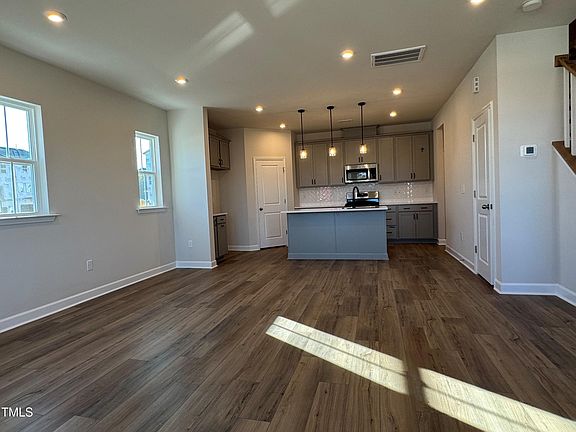 MOVE IN READY!!! Welcome to our SAMPSON. End Unit. Two-story townhome! Upon entry you are greeted by a sun-filled great room that is open to a gorgeous kitchen with SS appliances, upgraded Gray Cabinets, Quartz Countertops, tiled backsplash and luxury vinyl wide plank flooring thru out the main level. Take beautiful hardwood stairs to the upper level. Upstairs features three bedrooms & loft. Primary suite with spa-like bath that features raised vanities, private water closet and large walk in closet. Two-Car Garage. Other features include: Black Matte finsihes throughout, tankless gas water heater, Ring doorbell, Schlage Front Door Lock, electric car charging outlet, whole house surge protector. The community features a 15 acre lake, pool, parks, and trails! A brand new clubhouse and park are starting construction now! Minutes to schools, shopping, restaurants. Must see!