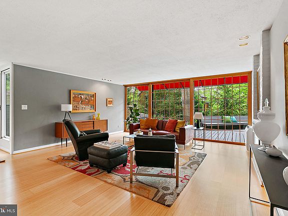What a remarkable home! This is your opportunity to live in an impeccably maintained mid century modern gem. More than just a stunning home, the surrounding property is equally as beautiful. Ringed by a healthy and established canopy of trees, wooded views are seen from all windows. The beautifully landscaped grounds lead to an exceptionally large deck along the entire length of the rear of the home. The property feels private and quiet despite being less than a mile from downtown Towson. Inside entry is in a split foyer with plenty of natural light. The first level entry opens to the living room with a brick fireplace. Through the entry windows is a view of a courtyard with pond. Off of the living room is a storage room, laundry room, and main level powder room. The open floor plan continues into the dining area. Thoughtfully, the dining area can be separated from the livingroom by a pocket door. The dining area has a skylight and vaulted ceiling for additional aesthetic appeal. Large windows look out to the deck from the family room. The family room flows into a spacious eat in kitchen with high ceilings. There are access points to the deck from both the kitchen and living room. Entry to the primary suite can be from either the spiral stairs in the family room or via the 2nd floor bedrooms. Plenty of closets line the walls of the primary bedroom and the hallway to access the rest of the second floor. The primary suite has skylights and large sliders overlooking the deck. Additional sliding glass doors with tree and deck views are located in the smallest of the bedrooms. The 3rd bedroom is quite large and has green views outside as well. The house has an additional crawl space and shed for storage. The driveway can accommodate up to 3 vehicles. This home is a dream in a dream location.