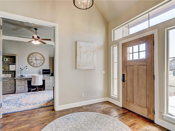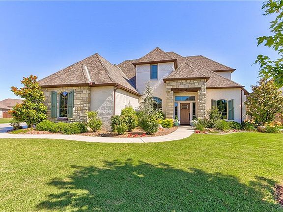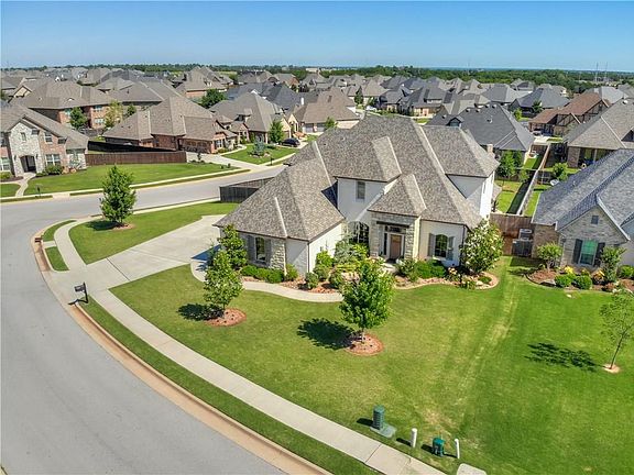Open House this Sunday, 10/13, 2:00-4:00. Amazing home on a spacious corner lot that is approx .40 acre. Great curb appeal & upgraded landscaping. Stylish & current finishes throughout. Formal dining & study are located off of entry. Gorgeous, hand scraped hardwood floors throughout the common areas. Living room is open to kitchen. Up-to-date, large kitchen with tons of storage that features island, breakfast bar, double ovens. Master suite includes whirlpool tub, double vanities, large walk-in closets, walk-in shower. Upstairs includes 3 spacious bedrooms w/walk-in closets and a bonus room. Other features throughout include butler's pantry, cased windows in living, storm shelter in garage. Back yard has covered patio, addn'l flagstone patio, fire pit. Quiet street in cul-de-sac with minimal traffic off of the main road - great for riding bikes and neighborhood block parties. Neighborhood is very family friendly. New elementary school within walking distance to school and parks.