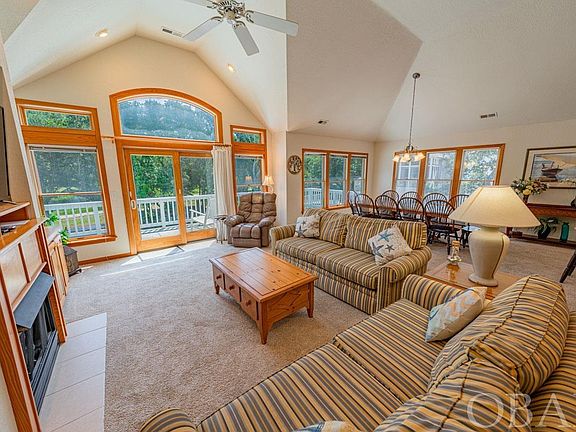 Located in The Currituck Club, the premier gated community on the Outer Banks, enjoy golf course living at it's best! This gorgeous home nestled between live oak trees and the 9th Fairway at The Currituck Club offers a wonderfully designed reverse floor plan featuring a top level Great Room, open Dining and Kitchen, Primary EnSuite Bedroom all with wonderful natural light, access to the large sun deck overlooking the private pool and golf views! Vaulted ceilings, gas fireplace, walls of windows and more! The bottom level of the home features four generous Bedrooms, two with access to a covered Deck, cozy Den which also opens to the covered Deck and two Jack & Jill style full Bathrooms. The two car Garage is an added bonus and doubles as a fun gaming space. With two levels of decks, a private pool deck and lovely covered porch at the entry there's a relaxing space for everyone! The Currituck Club offers exceptional amenites - Fitness Center, trolly service, commumity pools, tennis, basketball and pickleball courts, security and guard house. The combination of location, layout and amenities make this home the perfect choice for your primary home, investment property or second home at the beach! Sold fully furnished add this one to your viewing list!