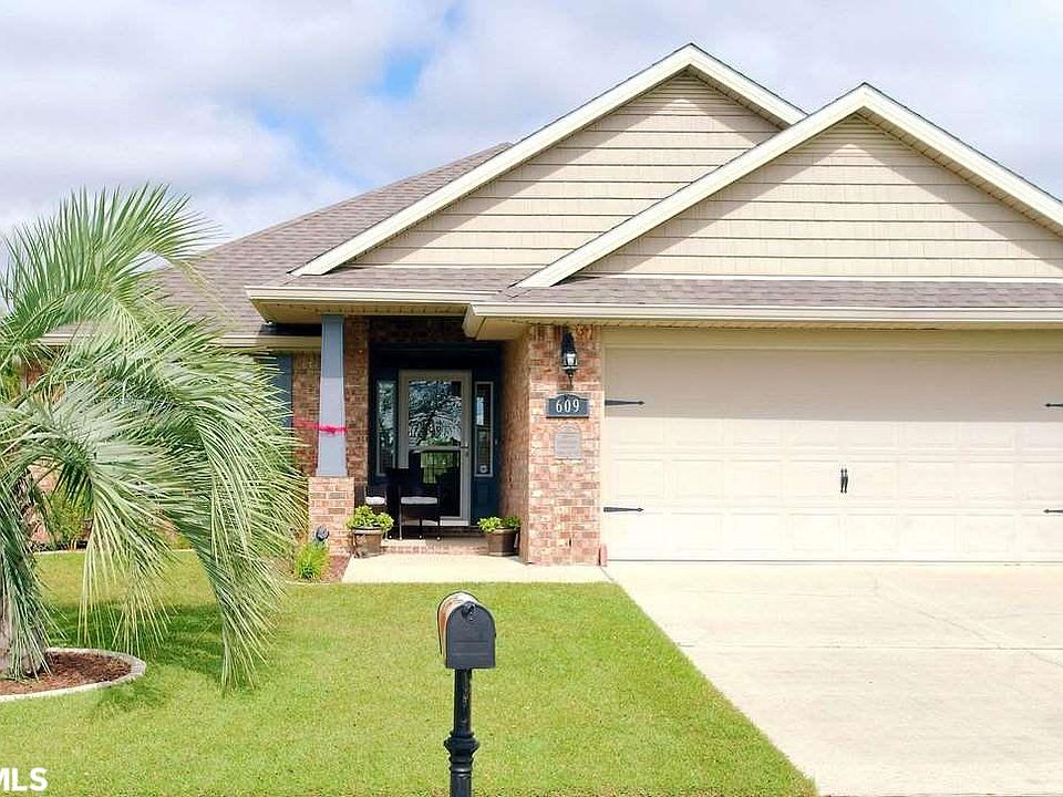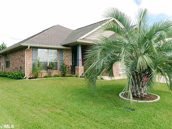 Captivating home with a red-hot location , private patio, sunroom and loads of interior light. This is a truly Immaculate home that opens to soaring ceilings and generous windows. Meticulously maintained throughout, the split floor plan has beautiful upgraded floors, granite counter tops, a high efficiency Whirlpool Stainless refrigerator and washer/dryer included, plus a double car garage. Serene privacy awaits you in the fully enclosed sunroom or you can step out back to lush landscaping and a 10 x12' patio that's perfect for grillin' and chillin'. The backyard view includes a lovely pine grove with no homes behind you. One of the six homes in the plan to have a peaceful pond view across the street. Recent upgrades are a new 2020 roof and spacious backyard privacy fence. Inside the home is a large modern kitchen with eat-in breakfast area and a separate dining room/or flexible room to expand. The master bedroom has a tray ceiling & walk-in closet, large master bathroom with double vanities, ceramic tile floor, and a very generous shower with built-in seat. This friendly, well-groomed neighborhood's hot location is due to many attractions: award winning golf courses, Hiking, biking, and walking trails. OWA amusement park, bowling and just a few short minutes' drive to the South's finest emerald waters and sugar sand beaches. Find bargains at the Tanger outdoor outlet mall and close-by grocery stores, restaurants, pharmacies, and a major hospital. A special highlight is also the easy commute to Mobile or Pensacola with near-by connection to the Foley Beach Express and Baldwin Beach express.