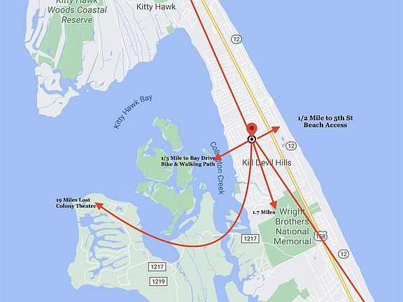 This 4 bedroom, 4 bath home is located in the heart of Kill Devil Hills off of Durham Street on a quiet cul de sac. With a Coastal Saltbox style, it offers low maintenance vinyl siding and one-car garage with space in back for work area or storage. On ground level there is a large bonus or flex room with private entrance, wet bar, private bath and laundry area. Middle level has 2 bedrooms with hall bath, open floor plan kitchen and living room. The Upper level has two bedrooms with private bathrooms. Currently used as a year round rental (option to terminate 90 days from Settlement), this home would also make a great year round residence or weekly rental. Only half mile from 5th Street Beach Access on the Atlantic Ocean and less than third of a mile to Bay Drive Walking and Bike Path that leads to the Wright Brother's National Monument! Close to shopping, restaurants, grocery stores and coffee shops, this is the perfect four seasons getaway. Make 609 Kelly Court your next real estate investment and own a part of the beautiful Outer Banks! Additional Info: Current tenant $2500/month, Septic repaired 2012, Kitchen floor 2019, septic pumped every year, Terminix inspects every year, American Home Shield Home Warranty $1200/year