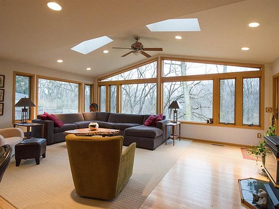 Natural light and fabulous views. This well maintained and tastefully updated North Side home sits on historic Kimball Road. A very scenic property surrounded by trees and much back yard privacy. In ground swimming pool for entertaining family and friends. Main floor walks out to patio & pool. Lofty ceilings, giant windows, open concept kitchen and hardwood floors on every level. Bedrooms on the upper level. Master has its own bathroom suite. Lower level has large family room & bonus room. Must See!!