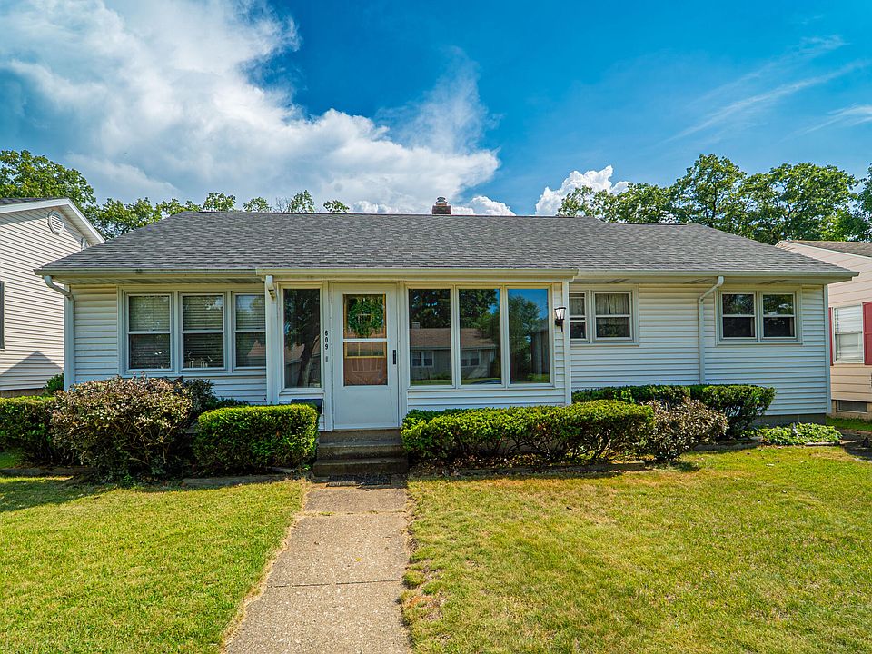 Two bed 1 1/2 bath ranch with unfinished basement and detached garage has nice curb appeal.Enclosed front porch offers ample sitting room for relaxing . The living room is a great size! There is a separate dining room with access door to enclosed back porch with lots of potential to be an extra office ,den, or rec room with beverage fridge.The kitchen is small but efficient with appliances to remain including a brand new stove.The main floor bathroom has had some recent updates too!The primary bedroom is large and has lots of nice windows. Second bedroom is more than average size .The home has a new roof and skylight and interior has been freshly painted.There is also some new vinyl plank flooring as well.Start out, scale down or add this home to your rental portfolio!Home has been virtually staged so you can imagine your own furniture in place!