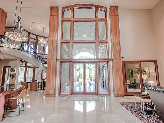 EXQUISITE MEDITERRANEAN-STYLE HOME IN BROOKHAVEN exudes architectural beauty & is graced by an extraordinary landscape design. The expansive property features a magnificent resort-like backyard that spans over half an acre & features a sprawling 2,500 sq. ft. patio w full outdoor kitchen & living space. The heated infinity pool & spa embody luxury & provide an idyllic setting to unwind & appreciate the stunning surroundings. Step inside & you'll be greeted by an awe-inspiring view through a vast glass wall encompassing the pool & water fountains. The extravagant primary suite is a true masterpiece with opulent bathrooms & tailored European closets. The property includes a home theater with 7-person seating & 100" screen, an entertainment room w balcony & bar, a gym & cabana. Other highlights include a study with a private bathroom, two ensuite bedrooms on the upper floor, heated floors, an elevator, gated driveway, & spectacularly finished garage. Primary suite even features a safe room for added peace of mind. Recent upgrades include a 2022 Crestron Smart Home Technology System, 2021 landscape lighting, 2021 roof, main A/C unit, 2023 pool heater, & 2020 pool replaster.