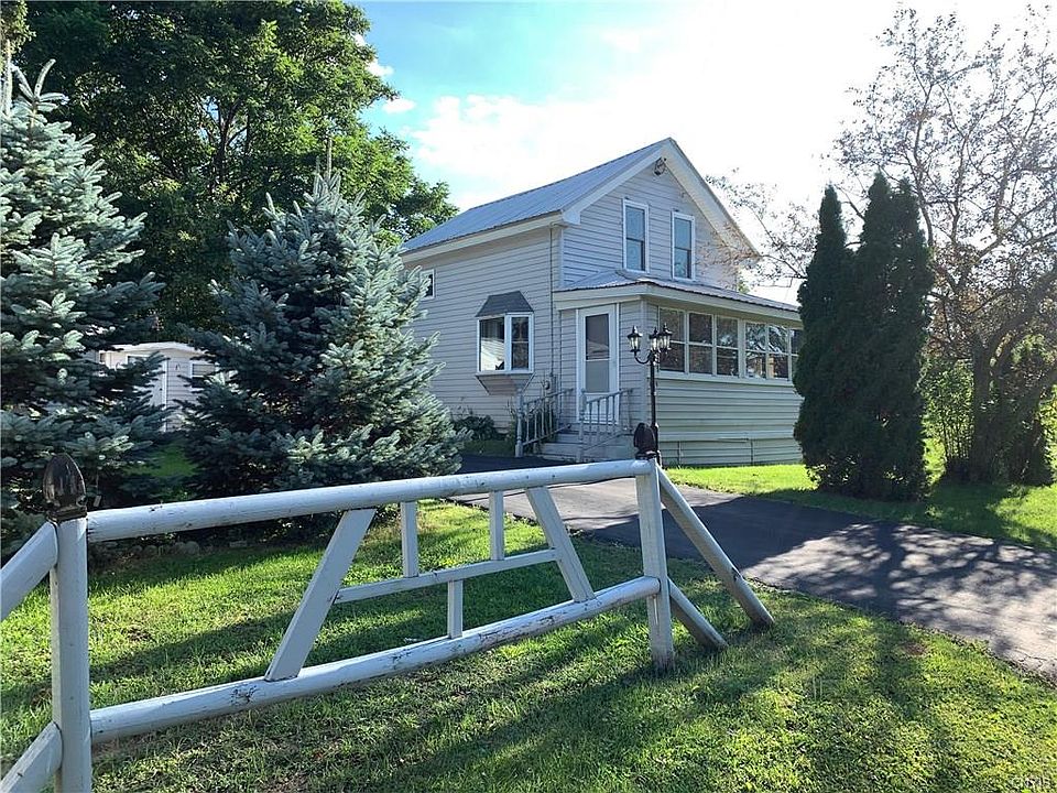 Great location..quiet city side street! Large city lot! Cute cozy house with large open bright kitchen, newer appliances. Nice size dining room with built in window seat and built in shelves for your dishes or décor. Living room is bright and cozy with access to a spacious enclosed 3 season front porch full of windows for view and breeze! Off the kitchen is a heated bonus room could be used as office, small den or laundry room. Upstairs there is a large bathroom with shower and two bedrooms one with built in dresser & desk. Outside you will find 5 sheds- a shed for everyone- tool shed, garden shed, toy shed, or storage. The large shed could be the man cave or she shed.. it has a large screened window- just take the outside panel off and spend your time relaxing and enjoying the fresh air!