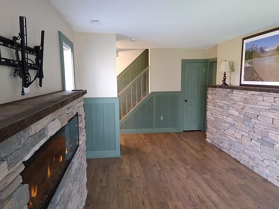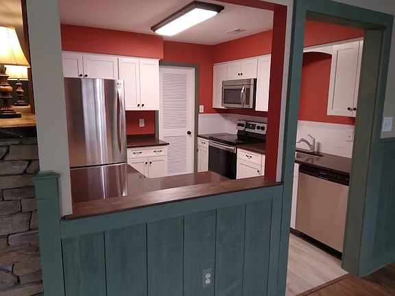 Nestled in the back of the Mews at Wyckford, this corner townhouse is surrounded by open space and woods, creating a very private and peaceful setting. Wyckford Mews is a quiet, secluded community with no through roads. Beautifully landscaped with flowers, flowering bushes and mature trees, it is a friendly, peaceful, and respectful community. The townhouse has been remodeled to resemble and feel like a rustic lodge, featuring stacked stone, barnwood siding and rustic flooring. A linear fireplace in the living room completes the lodge look and feel. The remodeled kitchen has quartz countertops, tiled backsplash, and plenty of storage and counter space. The washer and dryer are also new. A heat pump provides energy efficient heating and cooling. The large outdoor space is perfect for entertaining friends and family. A beautiful, wooded park nearby has walking and running paths, sports fields and a large creek. Convenient location for shopping and access to major roadways. Two bedrooms, 2 1/2 bathrooms, reserved parking and plenty of extra parking for your guests. Home Owners Association fees paid by landlord and include lawn and landscaping maintenance, trash, and snow removal, including shoveling snow to your front door, and reserved parking. Tenant pays electric and water.