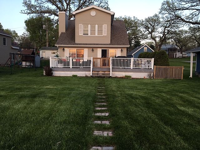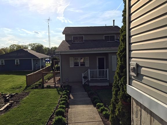 Beautiful water front on upper Fox River! Charming rehabbed year round home with low maintenance on river. Boat house. New seawall $10,000. Newer 2 car garage, siding, deck, roof, heat system, hardwood floors. Family room boasts surround sound, wood burning fireplace with French doors opening to sunroom overlooking yard & river. Open kitchen with white cabinetry, breakfast bar. First floor den could be guest bedroom. Formal dining room. New water softener, garage gutters, bedroom lighted ceiling fans. Walk to dining and entertainment. Quiet Street, close to downtown McHenry. Not in a flood zone. Motivated!