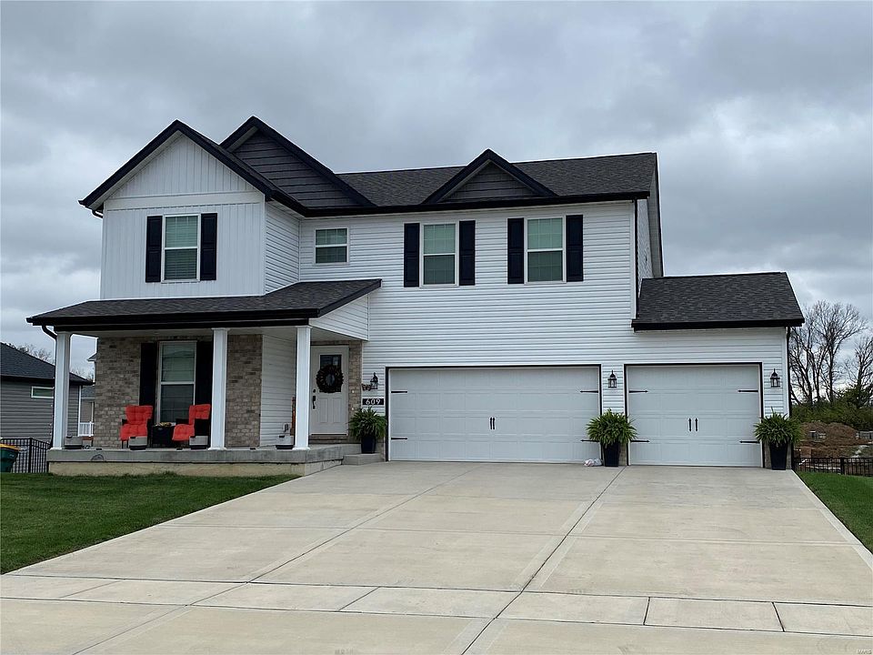 Nearly new home ready for you now! Maplewood floorplan includes LR/DR combination as well as a large family room with fireplace, breakfast area & generously sized kitchen. Granite countertops set off the white cabinets & the breakfast bar is perfect for entertaining. You can access the covered deck from the breakfast/family room. Bedrooms are all conveniently located upstairs. The primary suite features a walk in closet & bath with dual vanities, separate tub & shower. Other bedrooms are centrally located around a loft style family room. Great flex space if you need a study or office. Laundry is on this level. The lower level includes a family room, an additional BR & bath. Access to the patio is from the basement. You will appreciate the storage. The 3 car garage features an electric car charger outlet. Owners upgraded many features after purchase & added the aluminum fencing to the back yard. Close to Scott AFB & St Louis area. Audio/Video on premises.