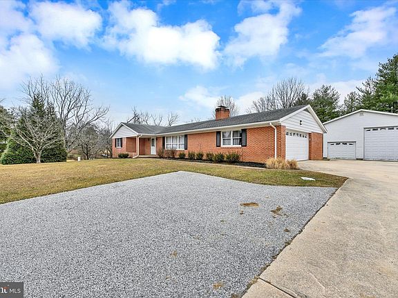 This welcoming 3 bed, 3 full bath all-brick rancher was custom built for its current owner, and is in excellent condition, boasting beautiful hardwood floors throughout and generous living spaces ready to wrap you in warmth and comfort. The bright entry foyer reveals a spacious living room showcasing large windows and cozy brick, wood burning fireplace, which opens to the formal dining room with slider to the brick patio and wonderfully private, level backyard. The adjacent country kitchen offers plenty of cabinet and counter space, as well as convenient access to the large first floor laundry room. Three bedrooms include a primary suite with full bath and walk-in cedar closet. Downstairs, the finished lower level boasts a huge rec room with custom built stone bar, stone fireplace with wood box, wainscoting, recessed lighting and thoughtful built-ins, plus a full bath and office or possible guest room, making it an awesome entertaining area for friends and family. There's even a 2nd kitchen in the lower level great for canning or additional cooking space. Outside, the half-acre level lot is perfect for warm weather fun, or your outdoor oasis plans. The 24x36 detached garage with 12-foot door can easily accommodate a camper or large vehicles. Top it off with a peaceful setting in the Hereford schools footprint, surprisingly close to conveniences, local shopping and I-83 access for commuters. Welcome home!