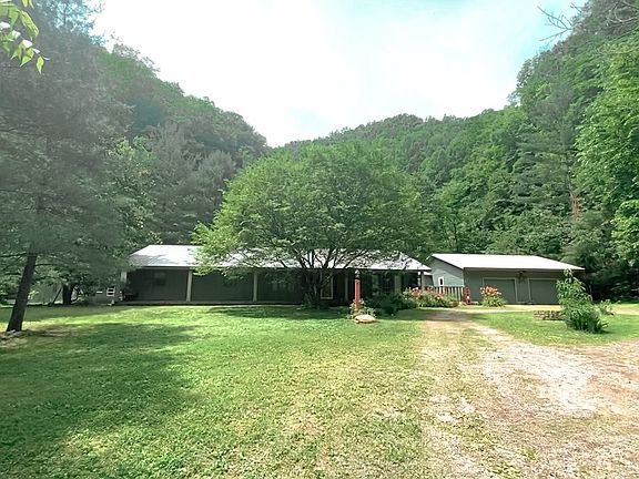 Privacy, nature, lots of living space, and more?! This unique, updated ranch is roomy on the inside AND the outside with 5 spacious bedrooms (two large owner's suites), open concept living space, a kitchen made for entertaining, spacious laundry, and den overlooking the courtyard. Outside you will enjoy your own slice of Eastern KY mountain paradise with over 10 plus estimated acres to call your own! This includes your own pond that attracts elk, deer, and other exquisite wildlife. Enjoy your day on the front or back covered porch and enjoy this one of a kind property. This property also features a detached workshop space! SO much to offer!