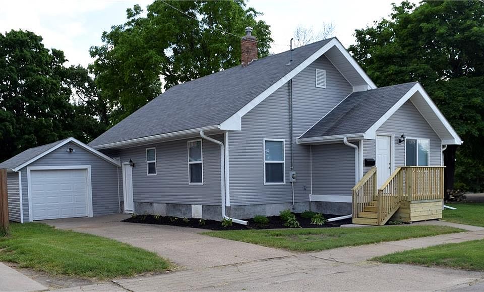 Come check out this newly remodeled bungalow! You will love the new laminate flooring in living and dining area. Kitchen has new cabinets, stainless steel appliances and tile flooring. Front porch and mud room add to the 952 square footage! ALL new windows and siding with a one car detached garage. Perfect for a first time home buyer!