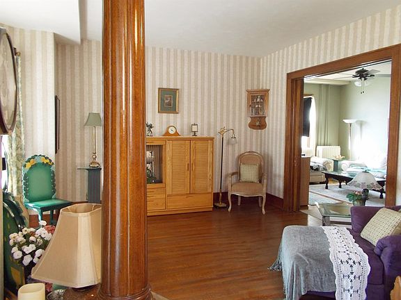 This Victorian home is stunning! Features include formal living room and formal dining room with beautiful cross cut oak floors, family room with pellet stove insert, Updated kitchen with island and tile & stone backsplash, 4 generous bedrooms, plus office/study, 2 updated bathrooms (upstairs bath features whirlpool tub), gorgeous front stairway and second rear stairway to 2nd floor, newly enclosed soffit/facia & gutters, new privacy fence in rear yard, new main stack, newer high efficiency boiler.