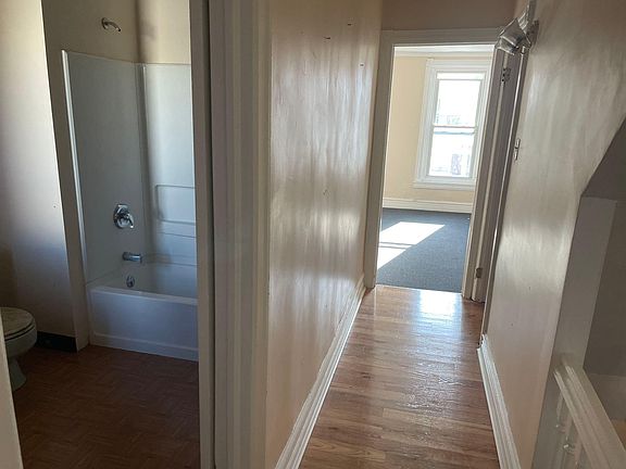 Recently Renovated 4 bedroom 1 bath house. Hardwood floors throughout entire house. 1st floor consist living room, dining room, kitchen and mud room. 2nd and 3rd floors are the bedrooms with closets. Bathroom on 2nd floor. Washer/dryer hook up located on basement. Renter responsible for snow removal and yard/grass maintenance. The tenant pays for water, Electric. Heating is electric baseboard. Move in fees: 1st month rent plus last month rent plus One month security Deposit. landlord requires: 3 recent pay stubs application photo ID Tenant pays all utilities. electric, water, tenant pays all utilities. water and electric. 1 year lease
