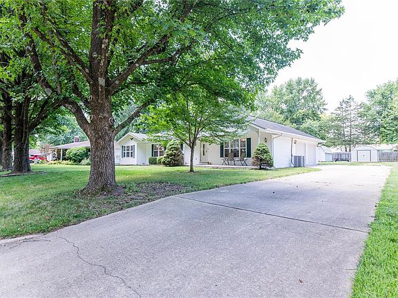 Welcome home to this charming ranch-style home right in the heart of St. James MO! You can have the convenience of living in town, all while having two lots and not one, but two storage sheds! Feel right at home before you even walk through the front door with the covered front porch and shaded front yard. Inside, you'll find a large living room, bright kitchen with custom cabinetry, and a vast primary bedroom. This home also features tons of storage with walk-in closets, a spacious laundry room and an oversized attached two car garage. This one will not last, call to schedule your private showing today!